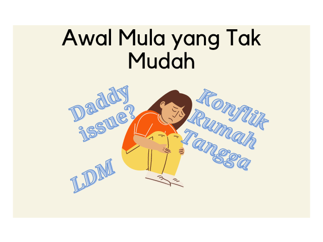 Awal menikah pun gak mudah. Kalau orang lain di awal menikah tuh manis-manis gitu kan, kalau aku malah banyak konfliknya. Selain karena aku punya daddy issue, cara pikir aku dan dia itu sangat bertolak belakang. Kalau sekarang diingat-ingat lagi, dulu itu kayak lagi naik kapal nelayan terus diterjang tsunami. Hampir karam :'(