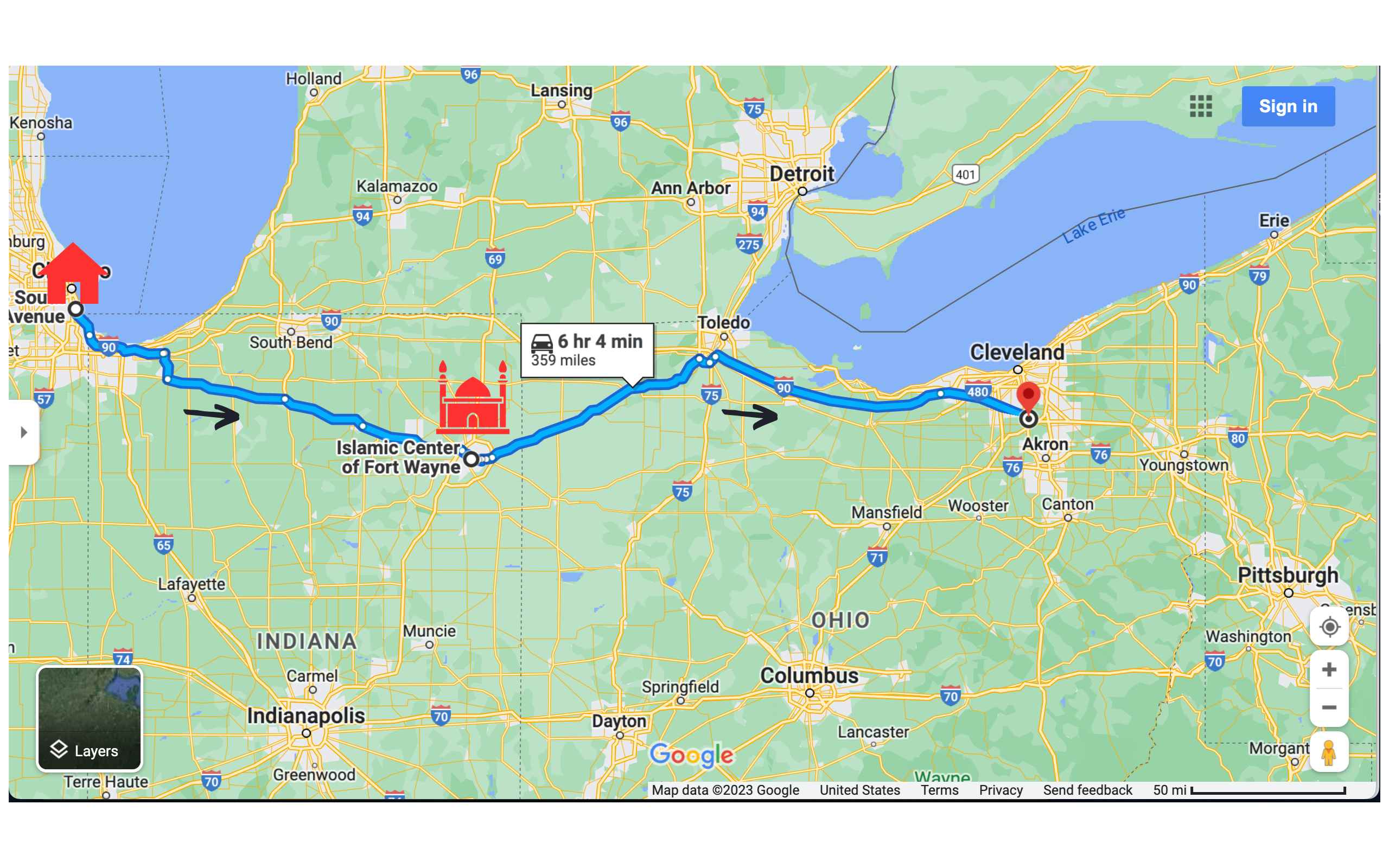 Sampailah kami di masjid di Fort Wayne, Indiana setelah 3,5 jam berkendara. Nama masjidnya Islamic Center of Fort Wayne. Di depan masjid ada mobil Toyota AE86 modifikasi terparkir. Orang dari dalam masjid keluar dan mendekati mobil itu. Suamiku ngedeketin dia dan nanyain soal mobil keren itu. Lah taunya sampai disuruh main ke rumahnya pas nanti kami otw pulang, mau dijamu.